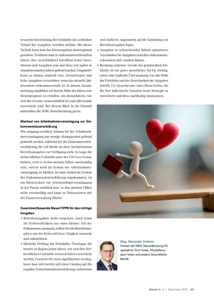 Eine der größten Unsicherheiten, die für gemischt arbeitende Personen besteht, ist die Frage, welche Betriebsausgaben aus der Freiberuflichkeit überhaupt steuerlich abgesetzt werden dürfen, und wie man sicherstellen kann, dass diese auch dann korrekt berücksichtigt werden, wenn die Einkünfte stark schwanken.