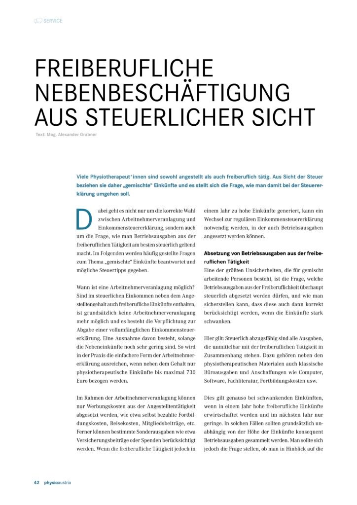 Viele Physiotherapeut*innen sind sowohl angestellt als auch freiberuflich tätig. Aus Sicht der Steuer beziehen sie daher „gemischte“ Einkünfte und es stellt sich die Frage, wie man damit bei der Steuererklärung umgehen soll.